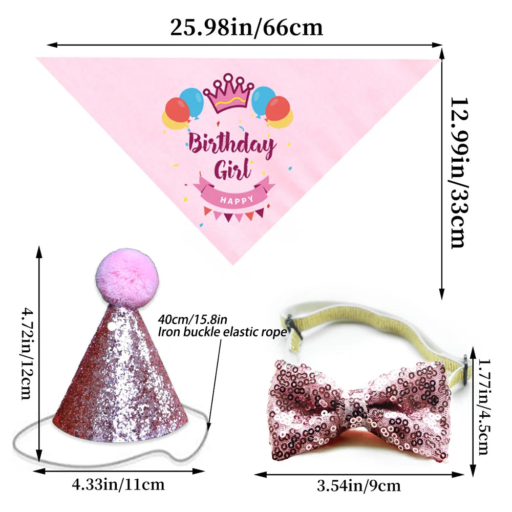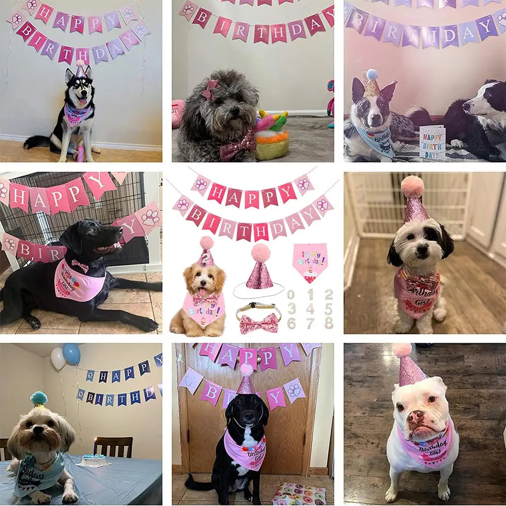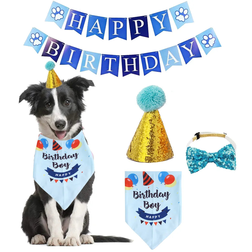 4-Piece Set of Pet Dog and Cat Birthday Party Decoration Flag Bow Tie Birthday Hat Saliva Towel Pet Supplies Set