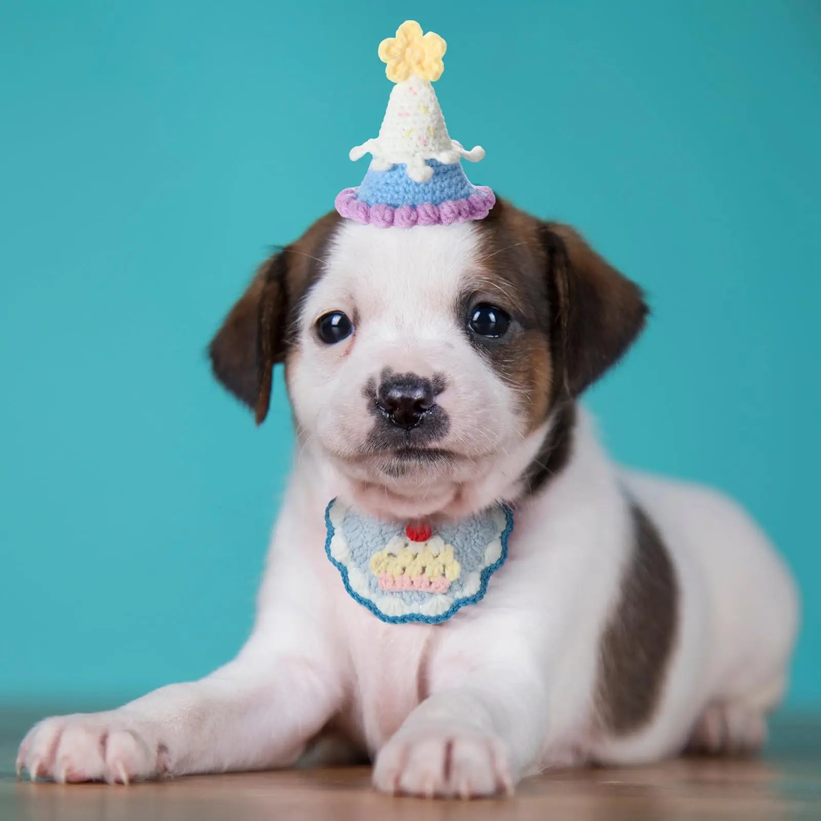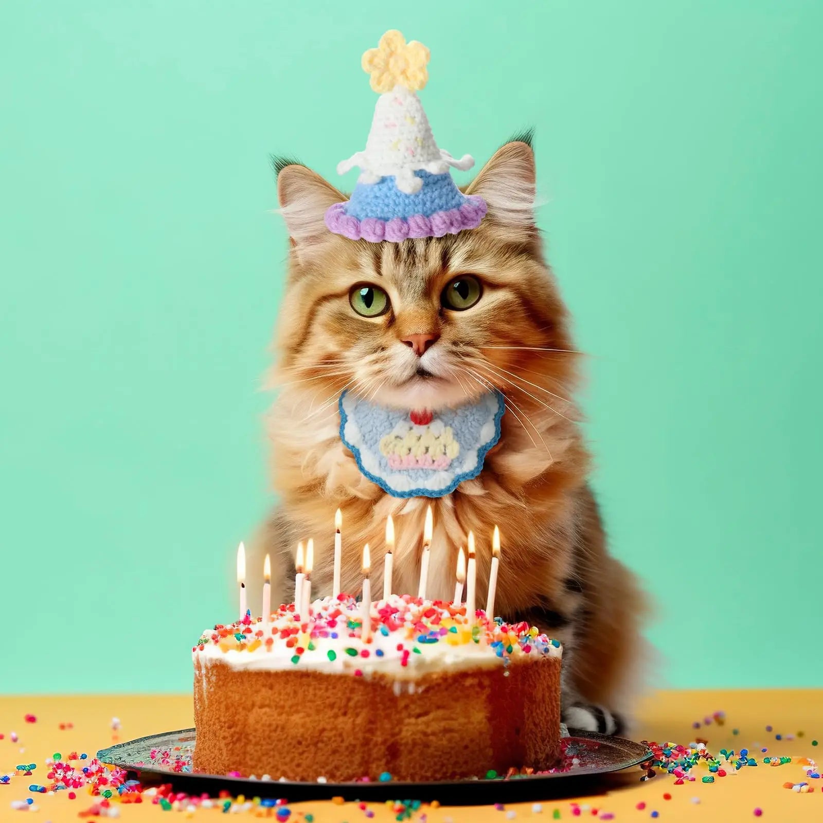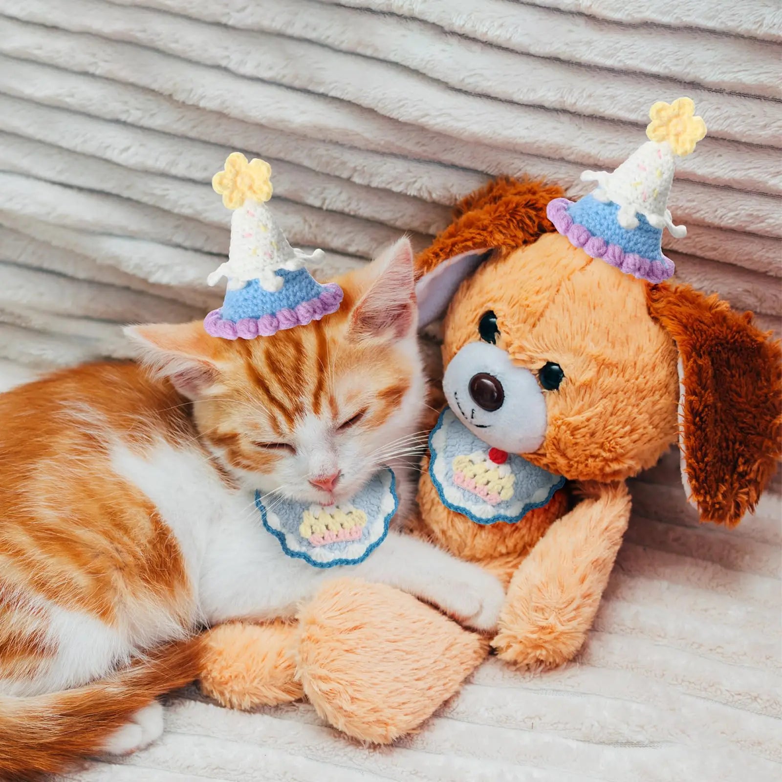 Pet Birthday Party Supplies Hand-Knitted Cute Cat Knitted Hat and Bib Small Dog Scarf Birthday Hat